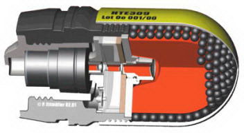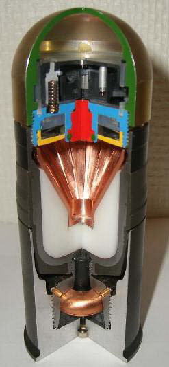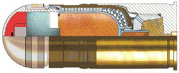 M384 HE(左)和M430 HEDP(右)的结构,可以看出弹壳内的高低压室与40×46mm低速弹的不同