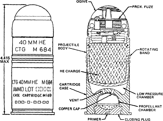 这种40mm RF弹是采用了Mk285的技术,但却是Mk19自动榴弹发射器的升级改造成有空炸功能的改进计划的一部分