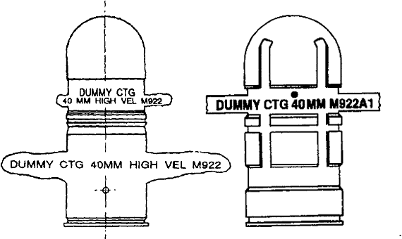 M922和M922A1教练弹全长4.415英寸(112mm),重0.76磅(350g),这是用于教学和练习基本操作用的假弹,不能发射。