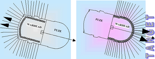 HTE309是瑞典的一种空炸榴弹方案,和美国的空炸榴弹不同的是,HTE309的战斗部在弹头前面,而不是后面。研究人员认为,战斗部在前面的杀伤效果会更佳(如下图所示)。
