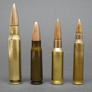 ![]() 从左到右:7.62 NATO,6.5格伦德尔,5.56 NATO |