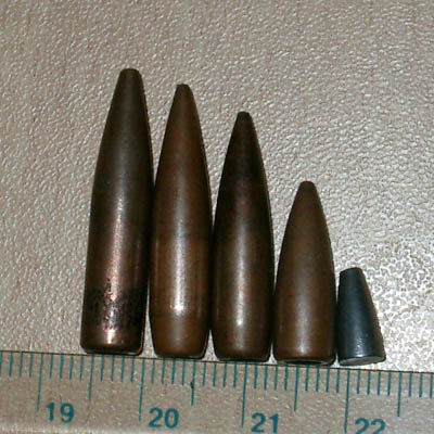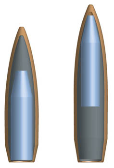 根据文字描述推测出来的弹头结构剖面图,与实物的比例可以有差别。图左为普通弹,图右为重弹。(Timothy提供)