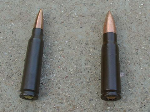 DBP87式5.8mm普通弹(左)与1956年式7.62mm普通弹(右)的对比