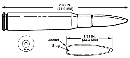 ![]() 7.62 NATO口径普通弹的尺寸 |