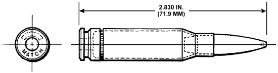 名称叫特种普通弹(Special Ball),其实就是狙击弹了。主要用于M21、M24和M40A1等狙击步枪,但也可在标准的M14上使用,一些比赛射手也在M14NM上使用该弹。这是一种铅芯、船形尾结构的比赛弹。根据测试,在M14NM上发射10发一组,在600码(550米)的散布小于12英寸(305mm)。