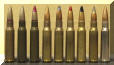 从左到右:曳光弹(阿根廷)、穿甲弹(阿根廷)、M/75普通弹(奥地利)、L18A1普通弹(奥地利)、狙击弹(奥地利)、曳光弹(奥地利)、穿甲弹(奥地利)