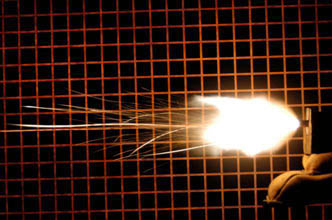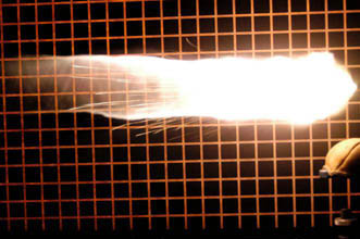用普通镜头拍摄曳光弹的效果,左图是标准曳光弹,右图是红外曳光弹