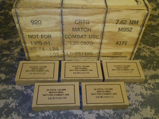 用于M14NM的比赛弹,主要用于射击训练和步枪比赛,根据美国陆军弹药手册上的说明,M852比赛弹不用于战斗。M852与M118LR相同,也是采用OTM弹头。