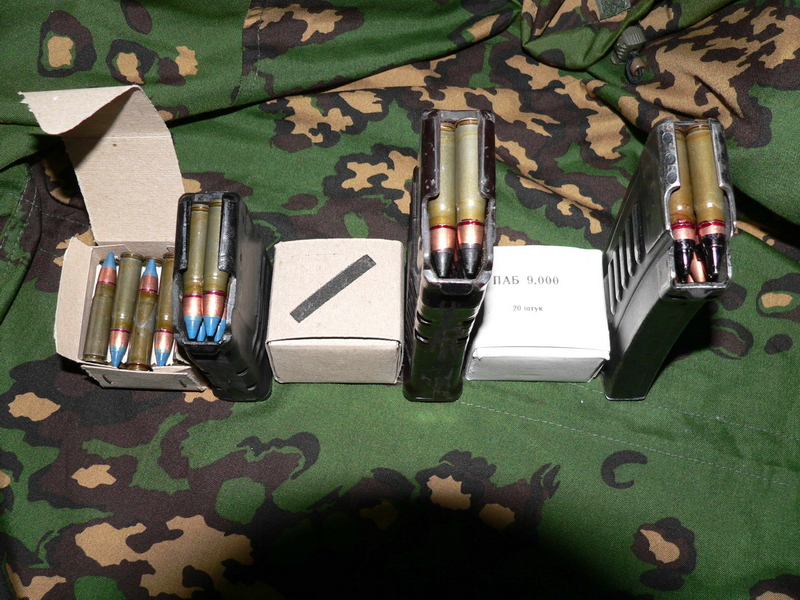 后来KBP设计局为9A-91研制了一种廉价的9×39mm弹药,命名为PAB-9(俄文ПАБ-9)。PAB-9的实际效果与SP6相近,也是穿甲弹,其钢芯硬度稍逊于SP-6,不过弹头更重,为17.3克(255格令)。但PAB-9只适合用于9A-91和VSK-94,如果在AS、VSS、SR-3和OC-14等其他同口径武器上使用则会严重磨损枪管。PAB-9弹在图拉弹药厂生产,弹尖同样有黑漆标记,现在早已经停产。