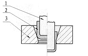 金属引伸加工原理示意图:1-冲头;2-钢盂;3-模具。引伸模的主要作用是使从覆铜钢带或圆钢上下料冲成的钢盂直径变小、壁厚减薄,逐渐使其符合图纸要求的形状和尺寸。 |