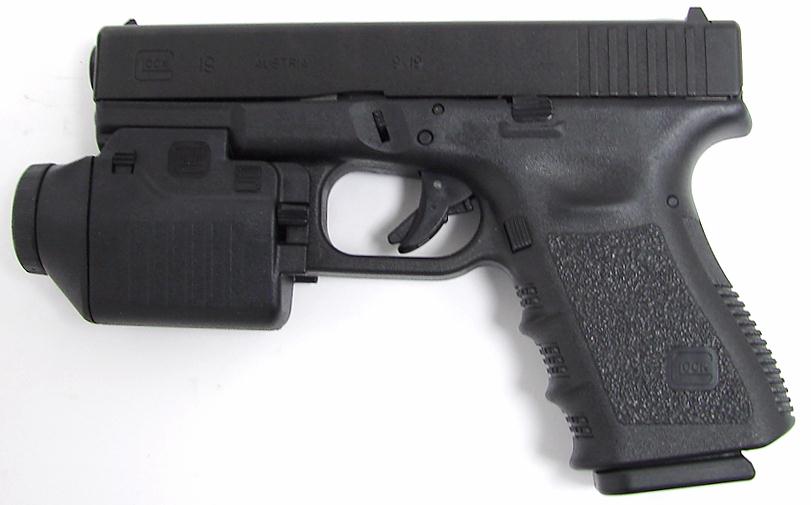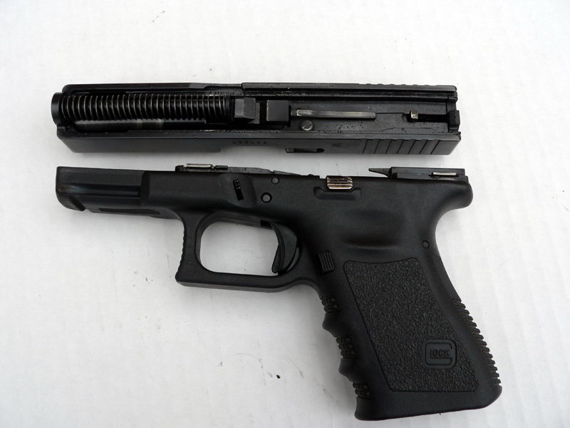 虽然GLOCK18的零件不能与其他GLOCK手枪互换,但人的智慧是不能不令你佩服的。在下面的图片中,从套筒尺寸及铭文上就能看出来是GLOCK19,但后部加装的快慢机表示这是能够全自动发射的型号。这是改装出来的。由于GLOCK18的全自动发射原理很简单,因此即使零件不通用,但要把相关部件DIY出来也不是太难的事。