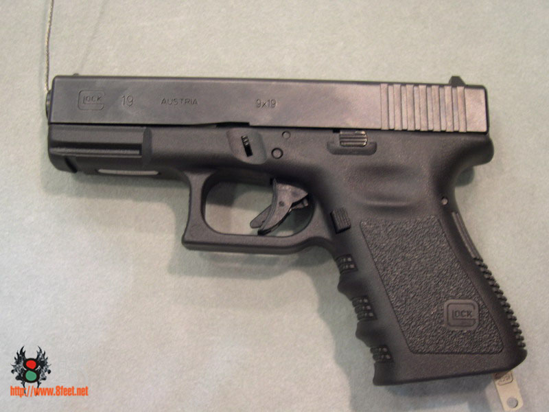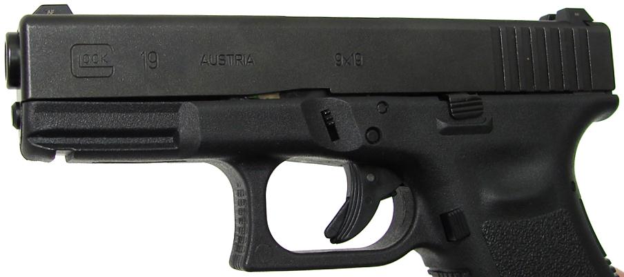 Glock 19是Glock 17的缩小型,尺寸、重量都更小,便于隐蔽携带。另外第三代的Glock 19还生产有枪管及套筒顶端开防跳泄气孔的“C”型。但和Glock 17一样,第四代、第五代的复进簧后坐缓冲器效果也很好,所以不再生产Glock 19C。但随着近年来流行在套筒上方直接加装小型红点镜的做法,Glock公司也相应地推出了Glock 19 MOS型。