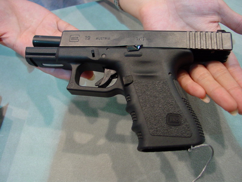 CIEPE2004上GLOCK公司展台的PPMM把GLOCK19展品递给冰刃,该同志不厚道,居然不提供MM的全身,大家从这小手上自行YY吧