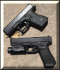 民间用户自己组合的所以CCW版GLOCK 19 MOS(CCW即隐蔽携带武器),美国有部分地区允许合法拥枪的人可以在持CCW证的条件下携带枪支出门。这把CCW版其实就是把一个Glock 19 MOS的套筒装在一个Glock 26的握把上。所以从另一个角度看,也可以理解为是加长版的Glock 26。