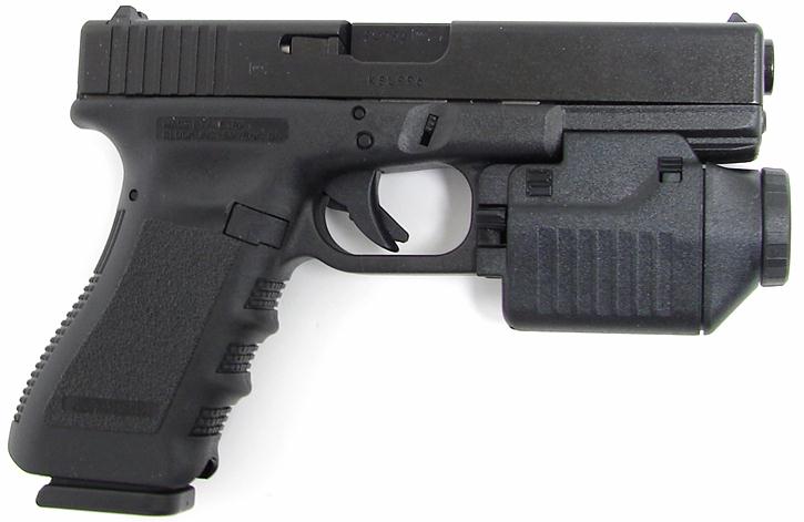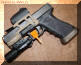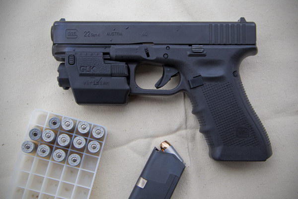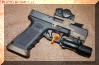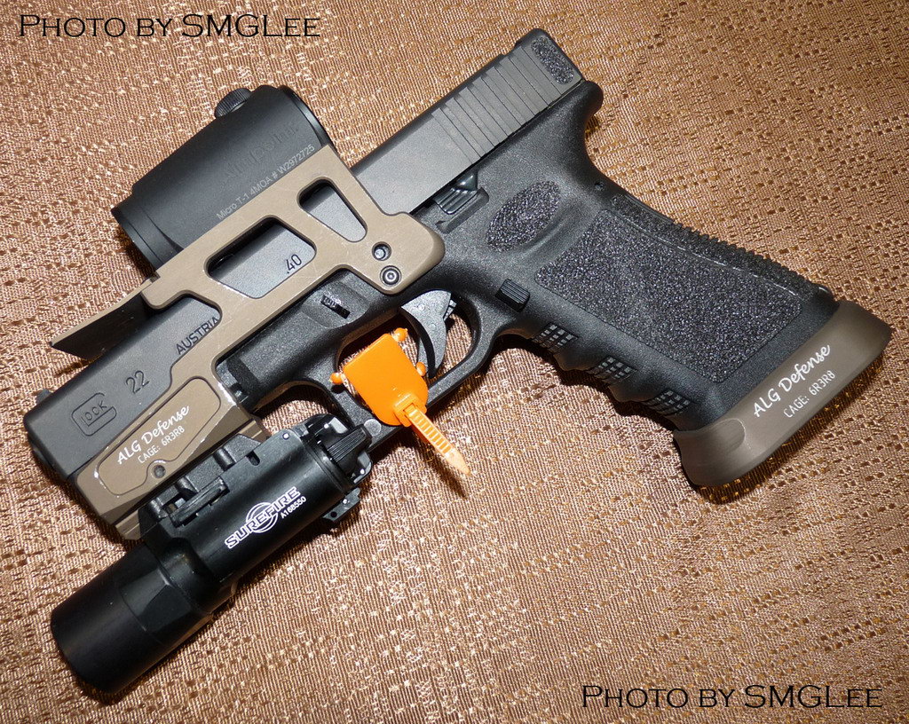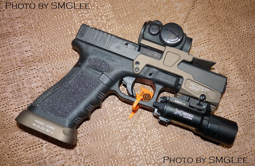 安装了Geissele公司的瞄准镜座及弹匣插座扩口附件的GLOCK 22,其他的GLOCK手枪也能装这样的附件