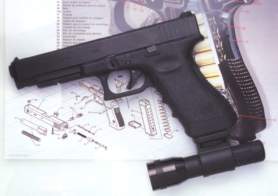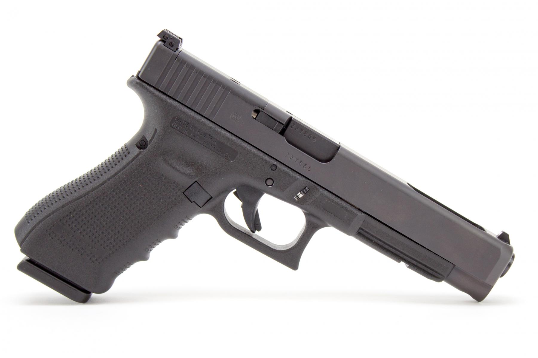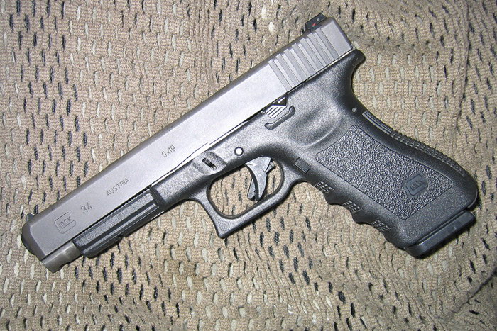 Glock 34发射9mm Para弹,长度介于Glock 17和Glock 17L之间,是Glock系列中首次推出的“短”比赛型——这个短是相对于枪管长153mm的比赛型而言。