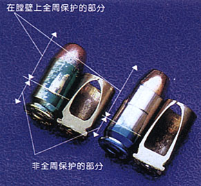 ![]() 从左到右:.45GAP的JHP弹,.45GAP的FMJ弹,.45ACP的JHP弹 |