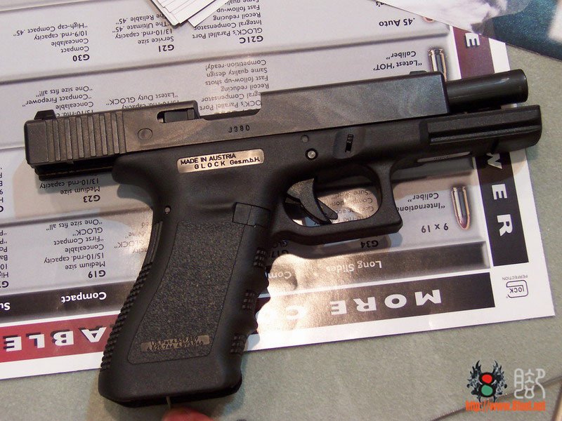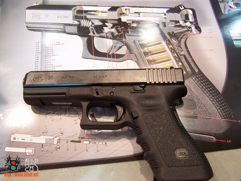 2004年6月底在北京举行的第二届中国国际警用装备博览会(CIEPE)上展出的GLOCK37(感谢八脚提供的照片)