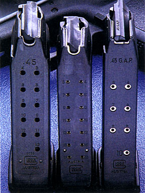 ![]() GLOCK21(左)与GLOCK37(右)的弹匣口对比 |