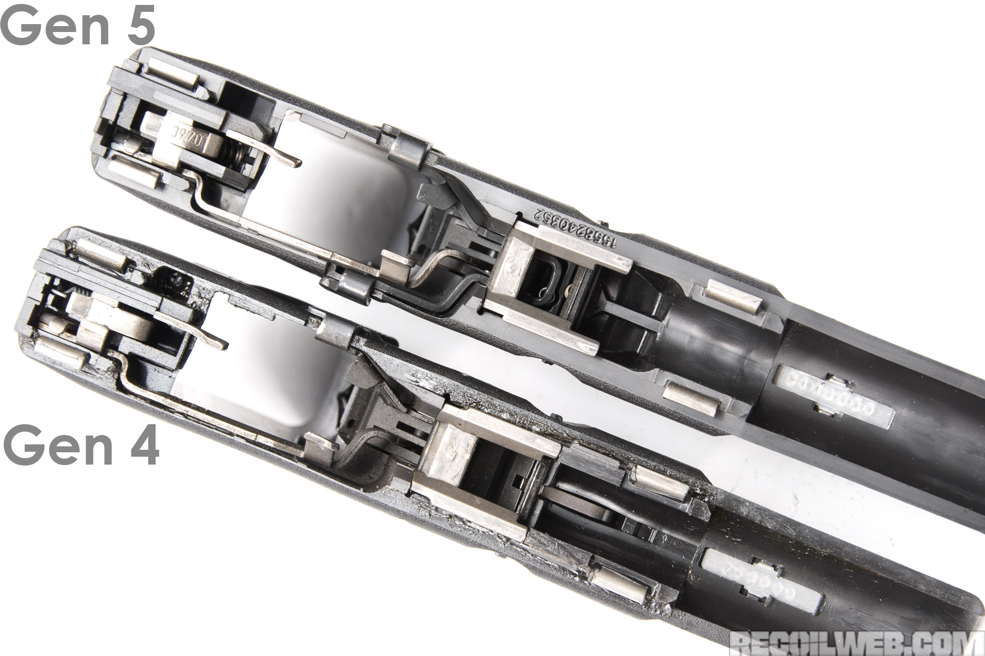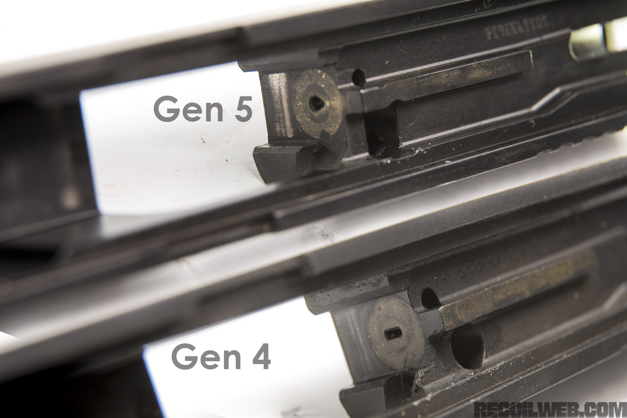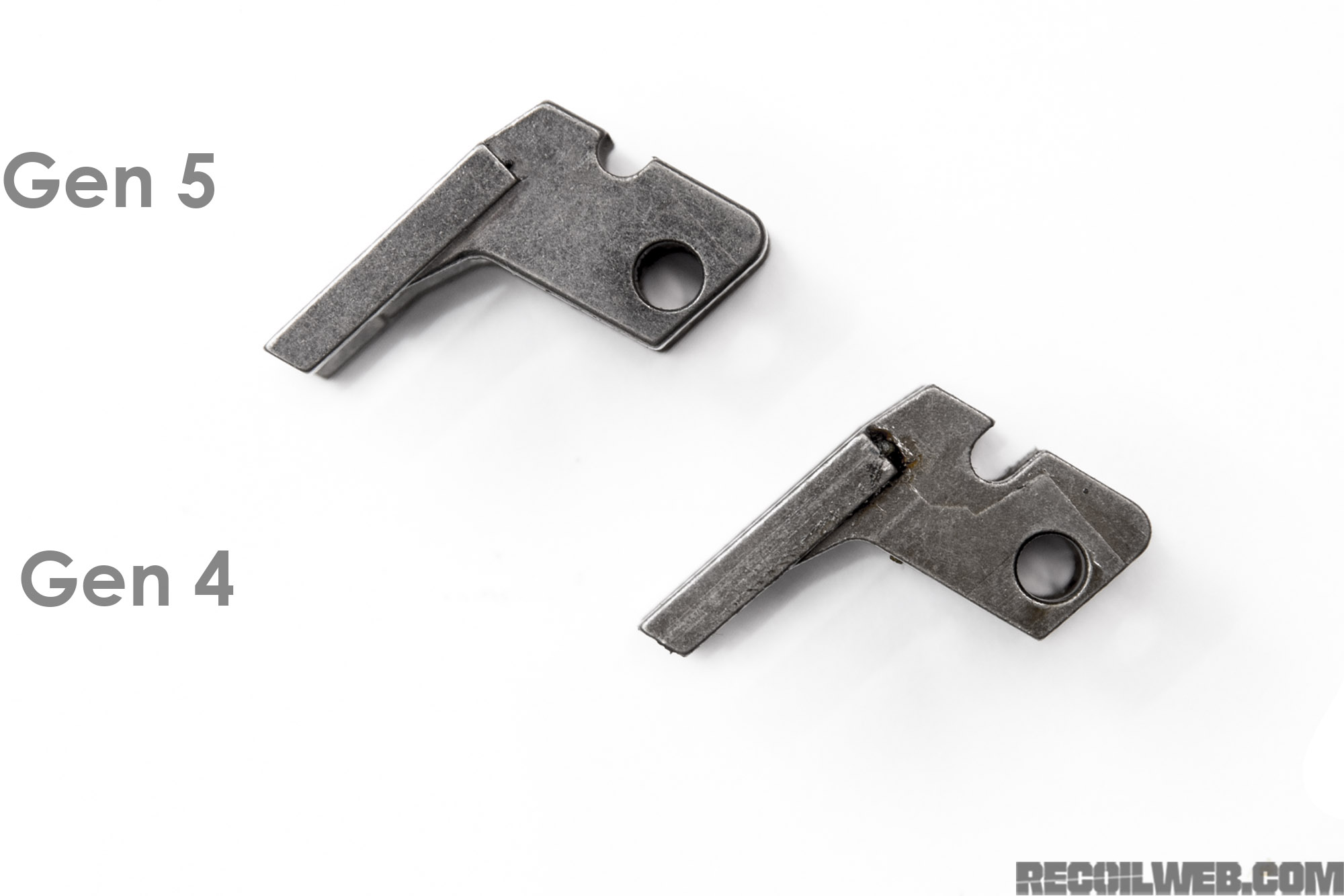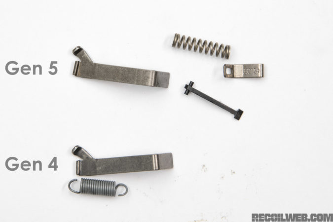 ![]() 第4代与第5代Glock在扳机拉杆上的变化 |