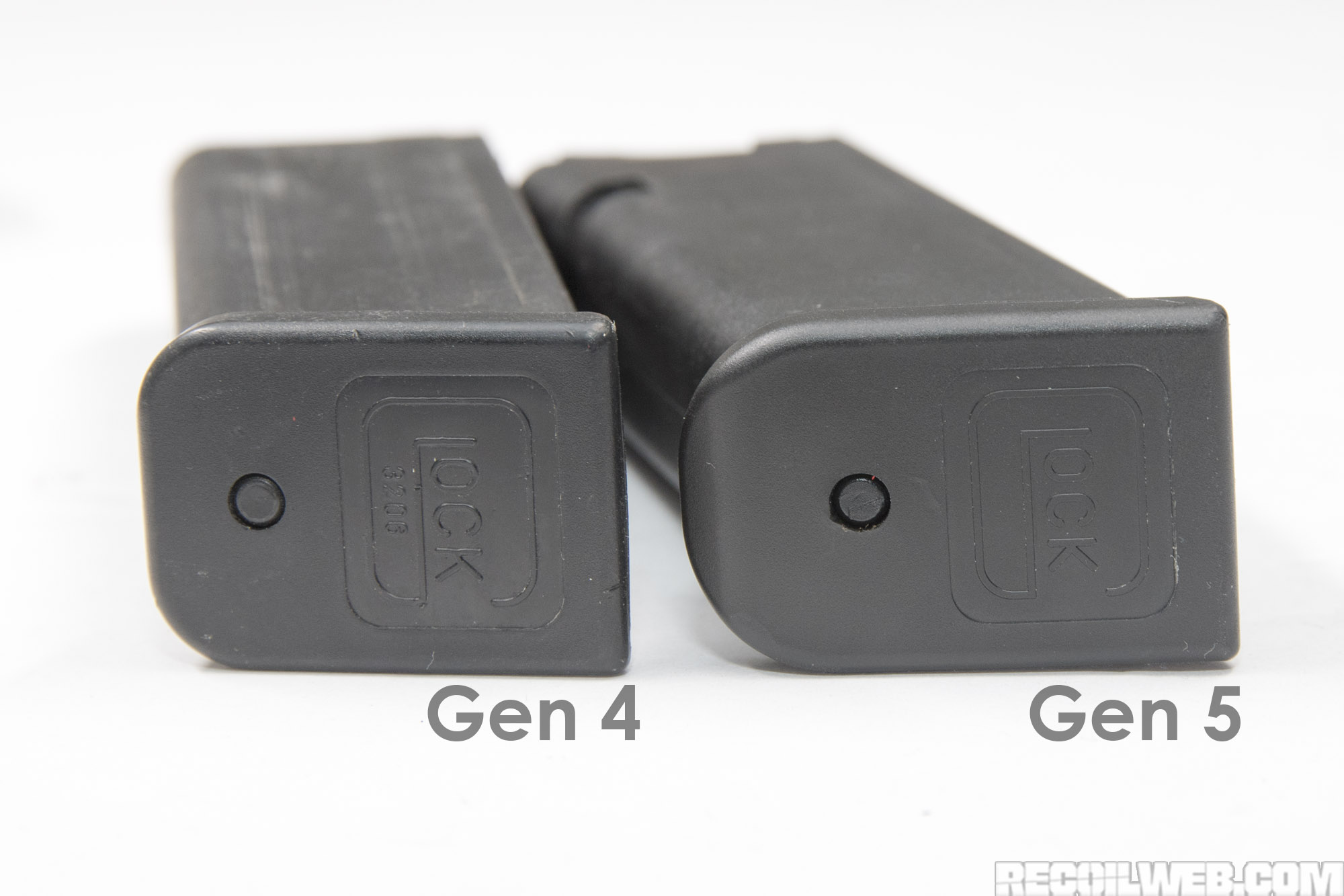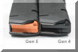 ![]() 第4代与第5代Glock在握把底部弹匣入口上的变化 |