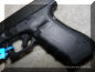 但接受“升级”的第一代格洛克仍然是第一代。因为第二代格洛克手枪不但出厂时就已经装上了“升级”的部件,也不再装配上出问题的短套筒导轨,而且在外观上也是有区别的。主要是握把侧面防滑纹的设计有了变化,另外握把前后也增加了方格状防滑纹,进一步减少手掌出汗后可能打滑的问题。所以区别第一代和第二代的地方就是看握把。