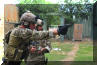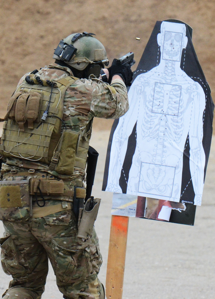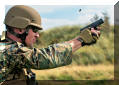 2011/2012 CAPEX军事演习中向民众演示武器射击技巧的陆军特种部队士兵,枪套里明显是Glock手枪