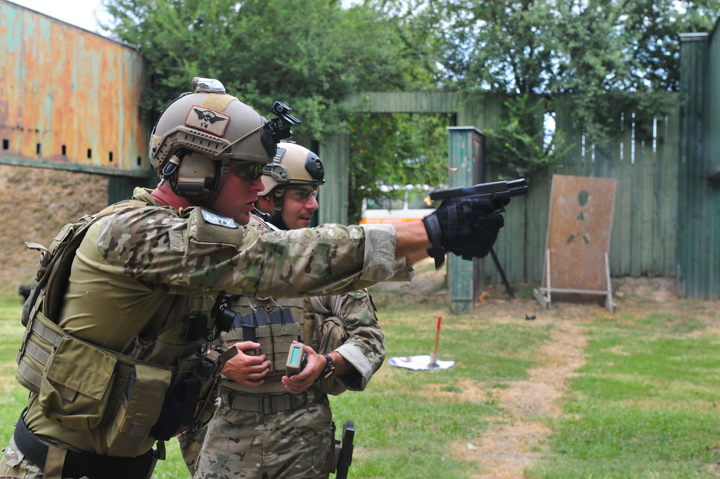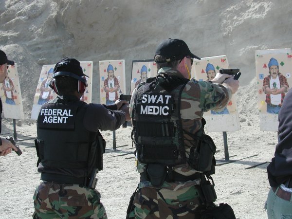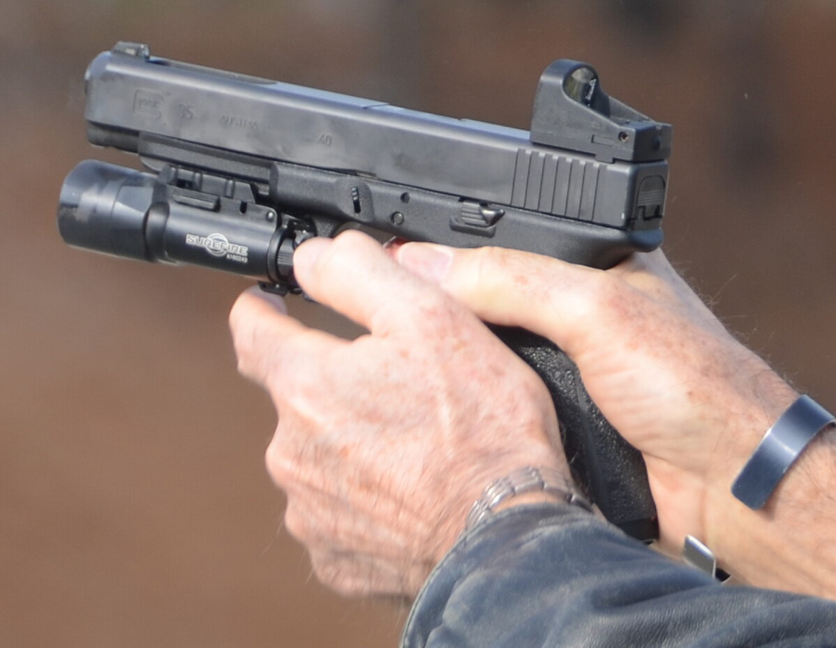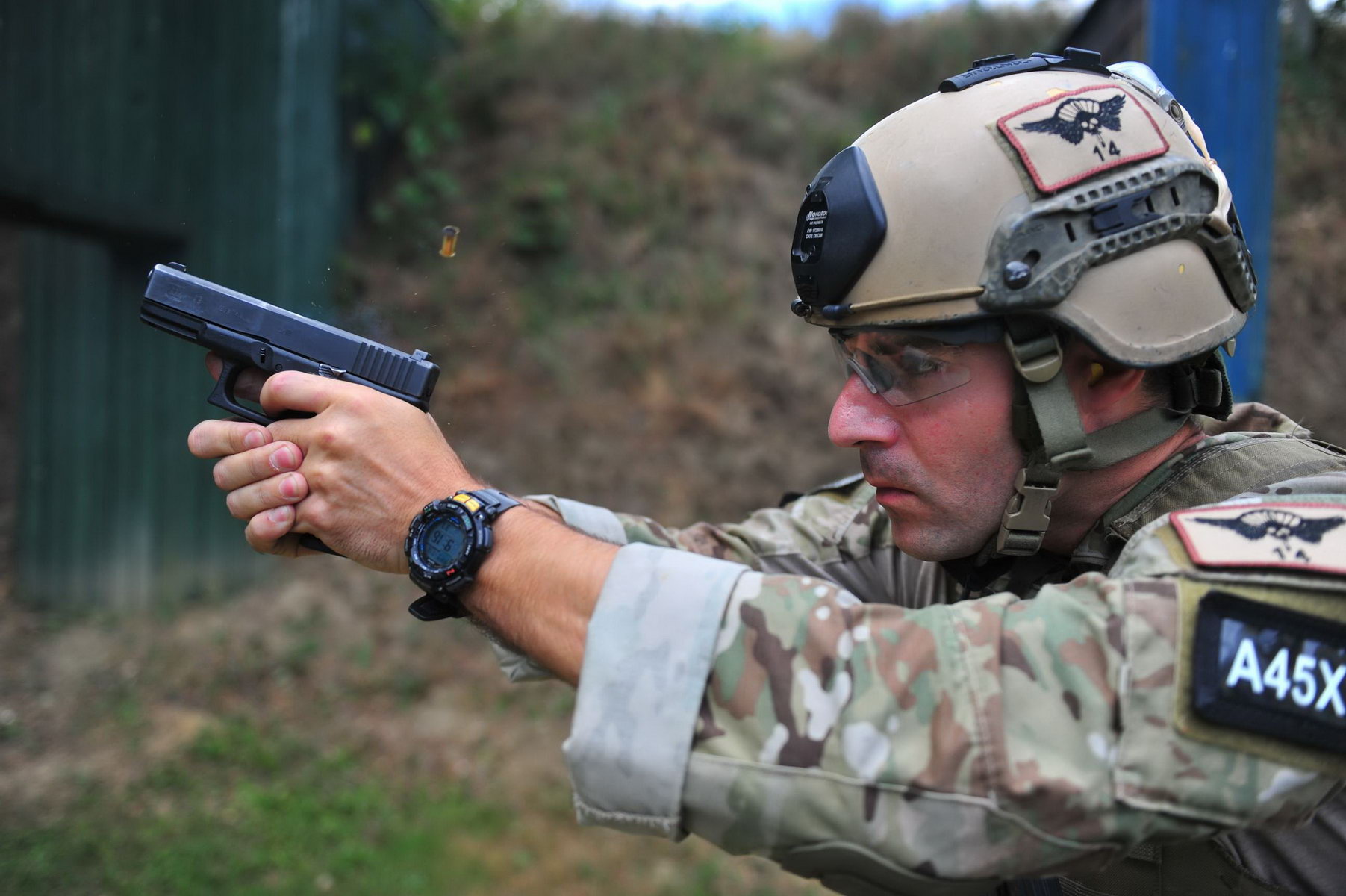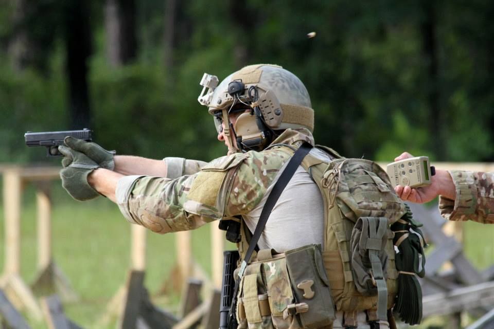 美国陆军特种作战司令部的人在打Glock35,据说陆军特种部队采购了一些Glock34和35