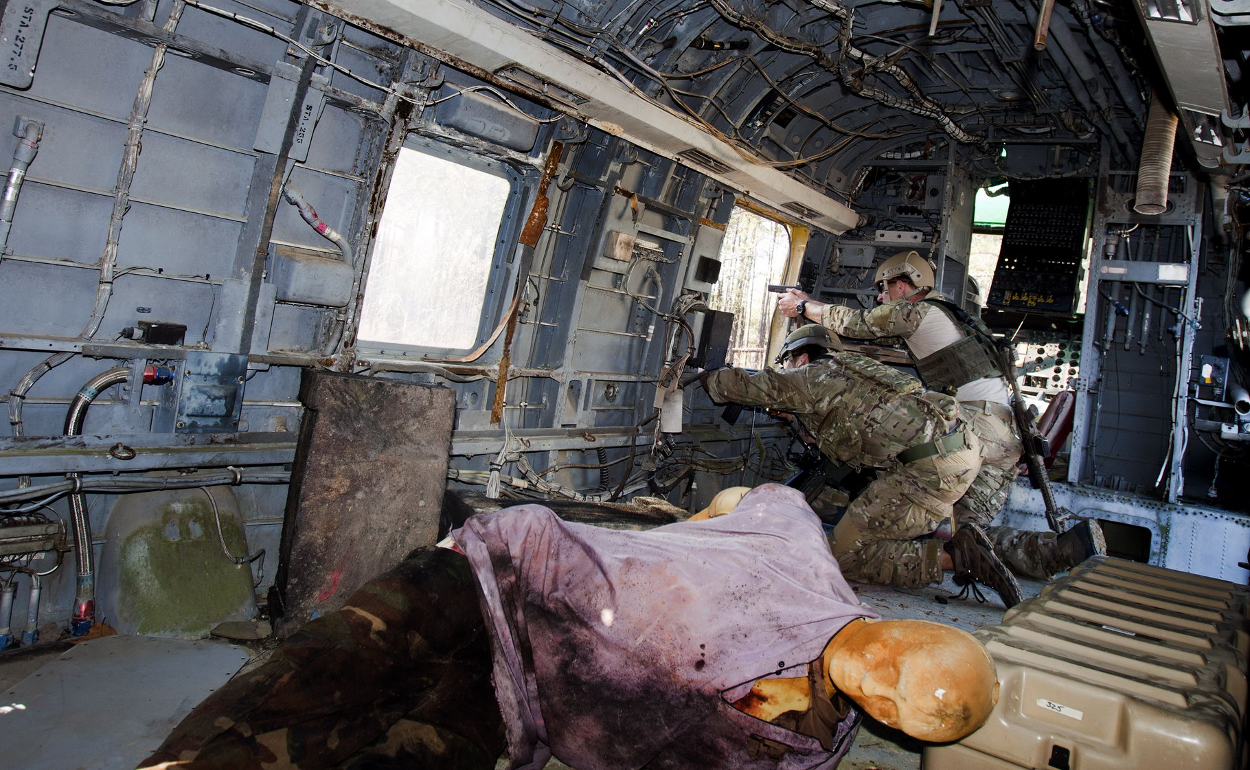 在废机舱内进行训练的美军特种兵,腰间枪套内的也是Glock手枪