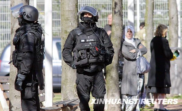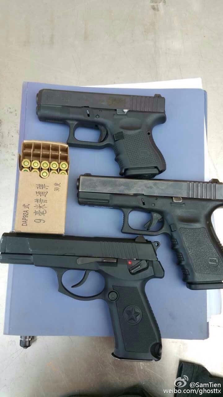 法国特警在处理一起枪击案时的照片,图中那把使用加长弹匣的Glock还不清楚具体型号,不过考虑到欧洲人的喜好,9mm口径的可能性最大。