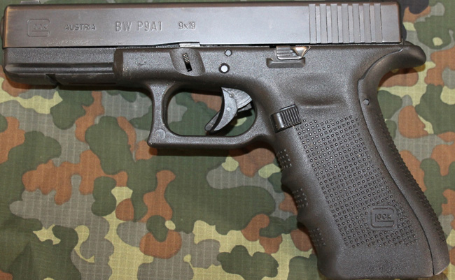德国求装备的Glock 17手枪被定型为P9A1,所以套筒上刻着“BW P9A1”