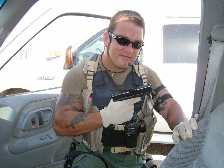在伊拉克的亚裔三角洲队员Tu Lam,胸前枪套里的可能是Glock19或Glock23