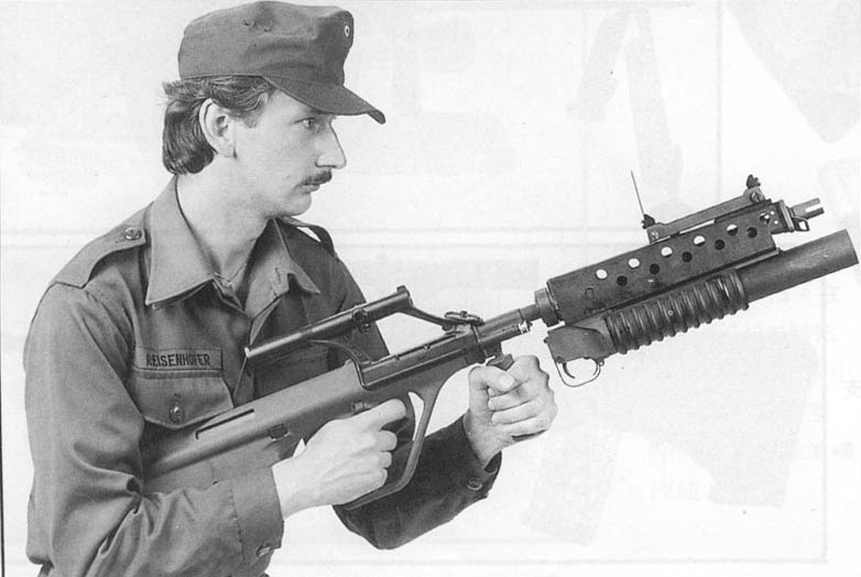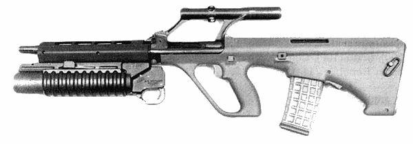 美国的M203榴弹发射器可以安装在标准型枪管的AUG上。