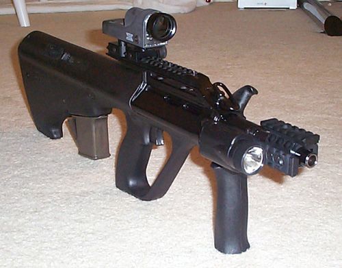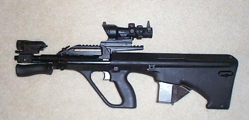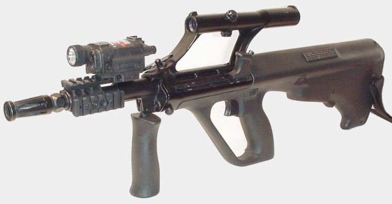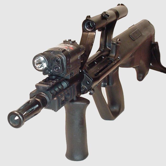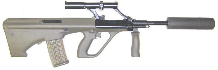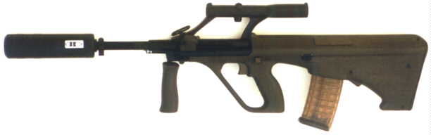 斯太尔公司并没有生产AUG用的消声器,但其他一些厂家则生产有适用于AUG的消声器。