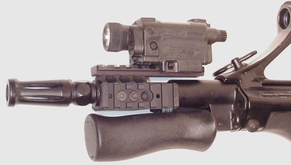 这种在在枪管上加上M1913导轨的附件,可以使AUG装上更多的战术附件,图中的AUG加上了ITI公司的LAM