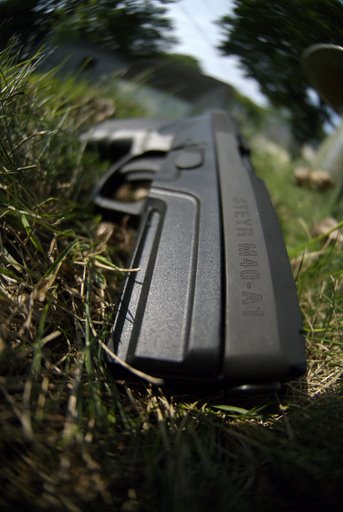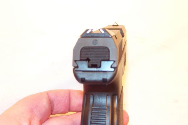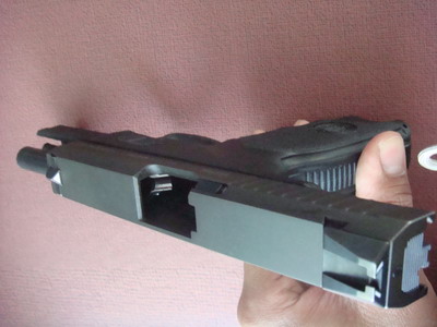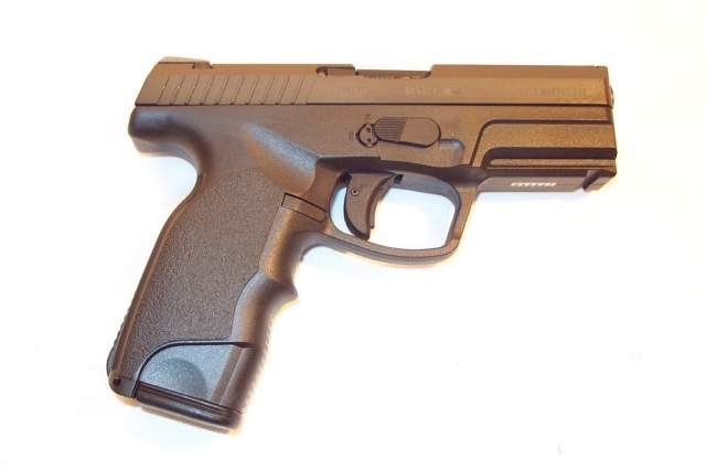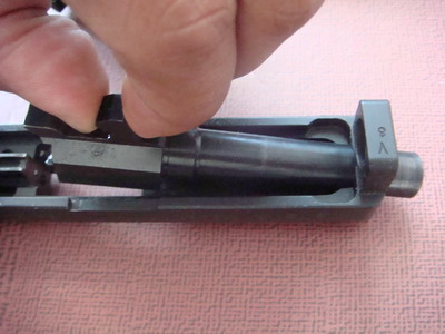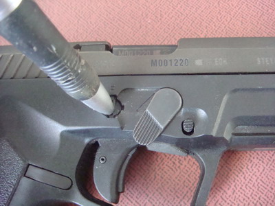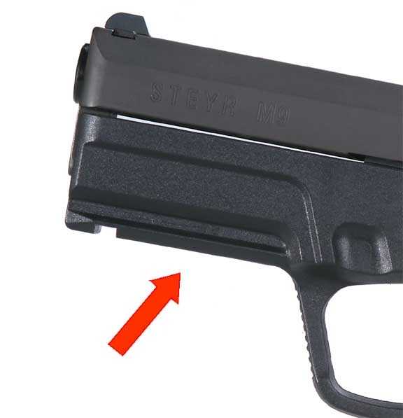没有手动保险的斯太尔M40-A1手枪,在原来手动保险按钮的位置上只剩下一个凹洞。