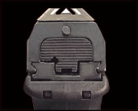 空仓挂机柄是底把左侧的一个小按钮,钢制的弹匣释放钮也在左侧,但位置稍为低了一点,而且尺寸很小,对于手掌较小的射手来说必须稍为移动一下手掌才能使拇指够得着它,这不是个好设计。