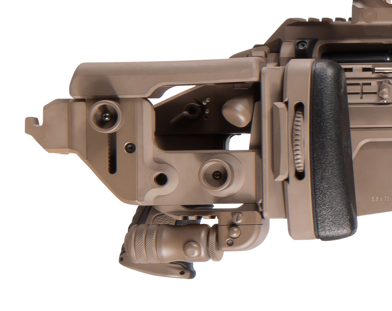 SSG M1的机匣,图中可见打开的抛壳口防尘盖,以及握把上方增设的拨动式手动保险保险柄