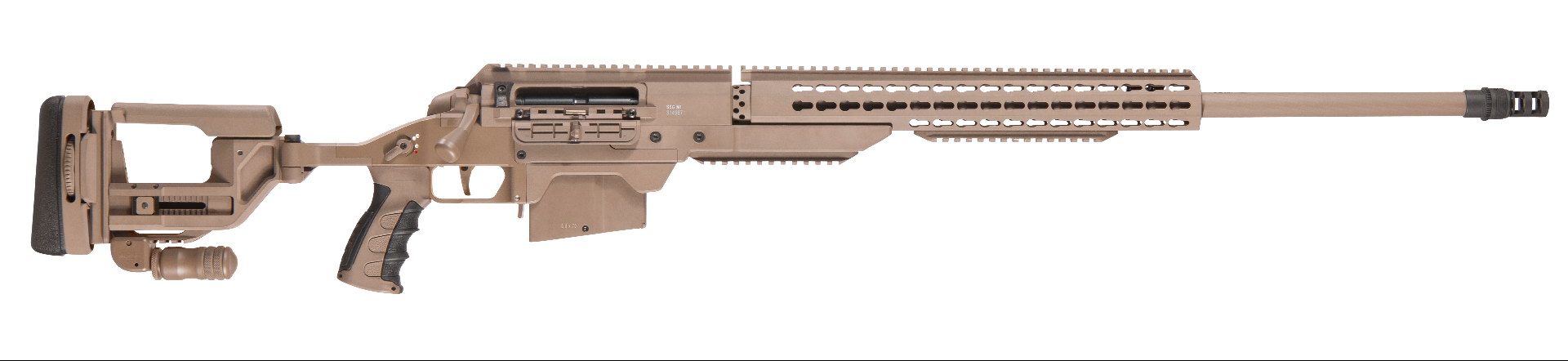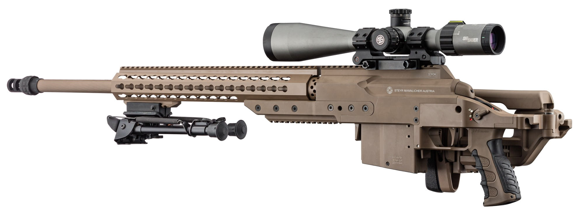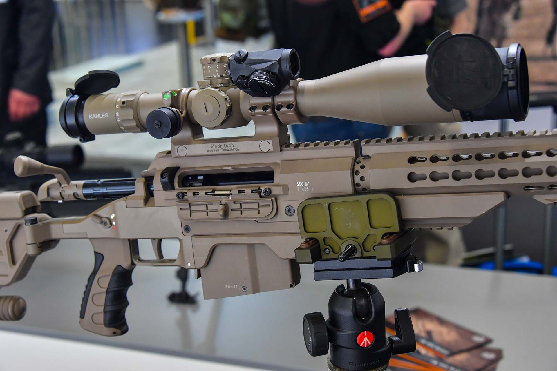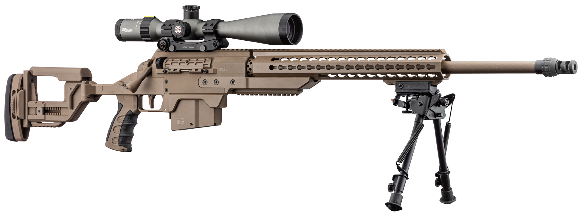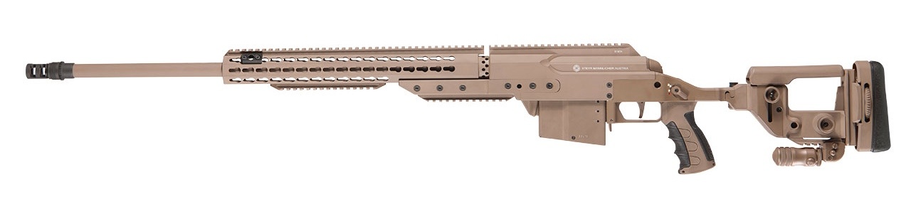 在IWA 2018上首次展出的SSG M1狙击步枪,该枪看起来似乎是SSG 08-A1的基础的改进型,但其实是因为SSG M1沿用了SSG 08的SBS枪机系统,但实际上SSG M1是一支新设计多口径平台狙击步枪。目前在民用市场上的售价是SSG 08的两倍(2020年北美市场的建议零售价是9,999美元)。在IWA 2018上有不具名的消息指出奥地利特种部队已经订购了120把SSG M1。