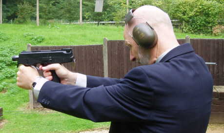 该枪采用延迟后坐式原理,闭锁系统为回转式枪管,在原理上与许多枪管短后坐的半自动手枪有相似之处,但设计上有很大的不同。枪机有些类似于包络式枪机,向前延伸到枪管中部,并有闭锁凹槽。而在枪管中间部位有8个齿轮状的闭锁凸耳,闭锁凸耳进入枪机前部的闭锁槽内扣合闭锁。在枪管前部有一个定型槽,枪管前部位于一个枪口衬套内,枪口衬套内有一个凸轮在枪管定型槽内。