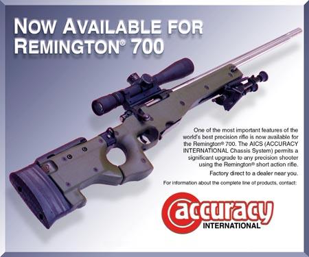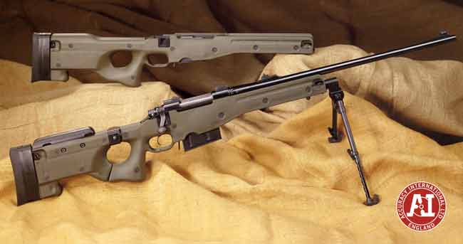 AI公司提供的AICS(Accuracy International Chassis System,即“AI公司底盘系统”)可把北美流行的各种雷明顿700步枪更换到AW系列的枪托上。