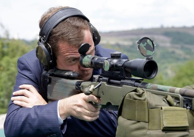 俄军特种部队少量购买过AWM使用,图为梅杰科夫总统视察部队时的照片