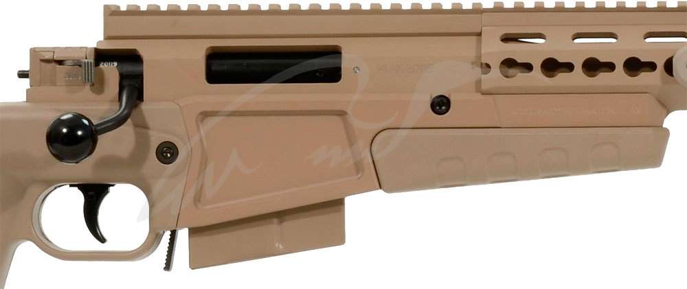 AX308其实是基于AXMC所设计的型号。虽然AXMC可以转换口径,但主要是以发射马格南弹为主。如果转换成.308口径,机匣长度就浪费好多,增加了无用的重量。所以AI公司就专门针对.308的用户设计了缩短机匣的AX308步枪。这样全枪长度缩短了近10厘米,而且重量也稍有减轻。