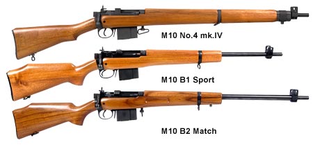 所谓的第5代李-恩菲尔德步枪是澳大利亚AIA公司(Australian International Arms)在原来的No.4步枪的基础上改变口径而来的,称为M10系列。最初的型号是直接把No.4步枪转换成7.62mm北约标准口径,命名为M10 No.4 Mk.IV型,后来又推出了M10 B1型运动步枪和M10 B2型比赛步枪以及M10 B3 Limted Edition,外观特征上都是切短护木。另外还有一种被称为M10A1的7.62×39mm口径型,可以直接使用AK弹匣,但有一种说法是M10A1并非AIA公司的产品,而是其他厂家改装的。
