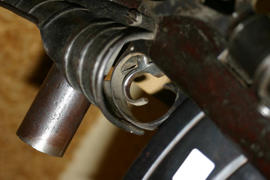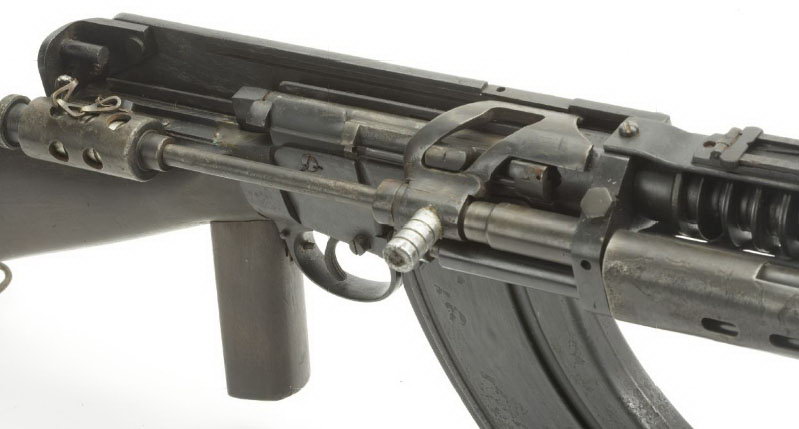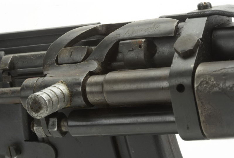 豪厄尔自动步枪的运作原理:活塞杆的导槽带动拉机柄转动和前后移动