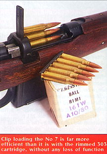 加拿大生产和装备的C.No.7步枪,下方是作为对比的.303口径No.4的机匣部分