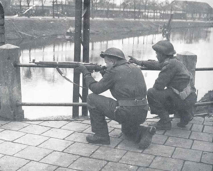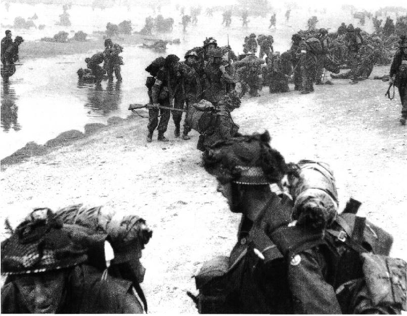 ![]() D-DAY当天正在宝剑滩上登陆的英国皇家海军陆战队第45突击队,在西欧作战的英军装备的步枪以No.4为主。 |