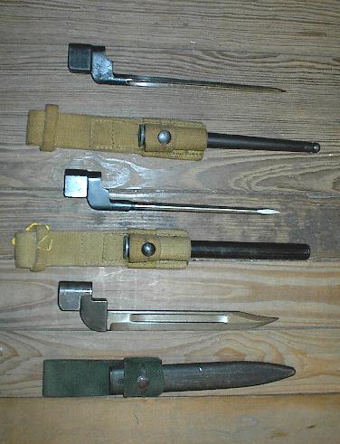 No.4 Mk.I步枪配用的两种刺刀,上为四棱刺,下为剑形刺。均没有刀柄,因此难以像No.1步枪的刺刀那样当匕首使用