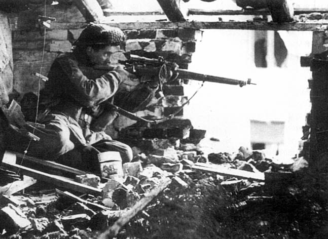 背着No.4 Mk.I(T)狙击步枪的英军的狙击手。