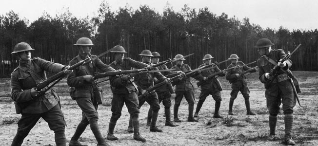 使用M1917步枪进行拼刺训练的美国远征军